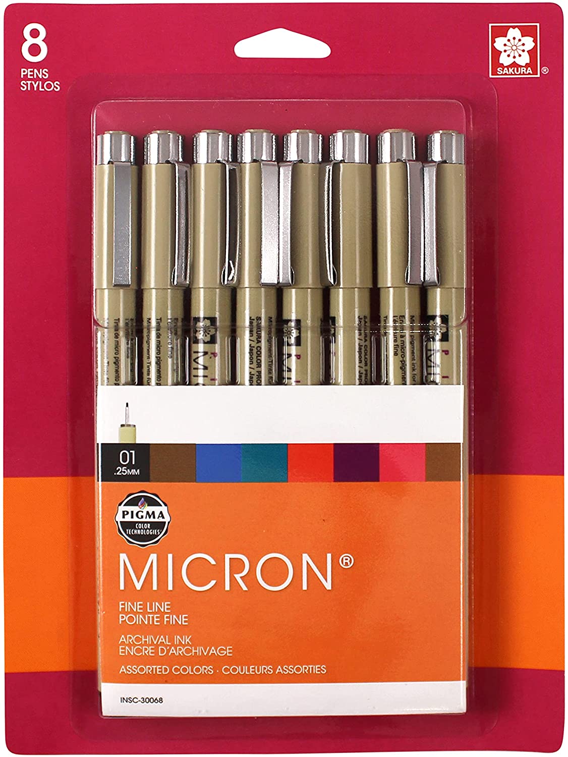 Micron Assorted Colors Ink Pen 8 Piece Set