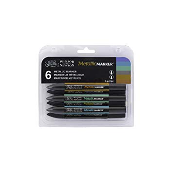 Begin your MetallicMarker collection with this colour kit of Violet, Blue, Green, Silver, Gold and the shimmering Red Gold. Twin-tipped, they offer both medium and fine lines. The pigment-based ink used are lightfast enough to provide long-lasting results – even when blended with water.